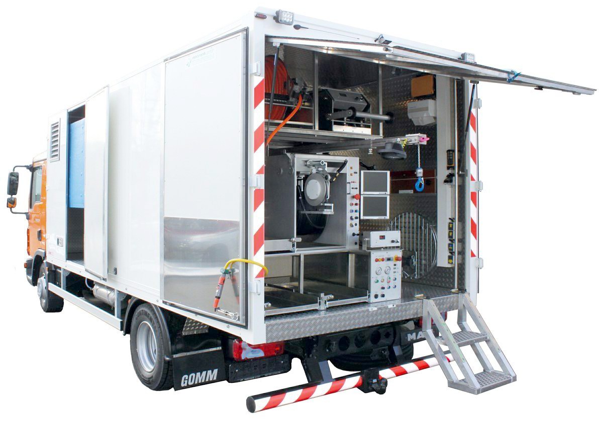 Hervorzuheben ist der großzügige Zugang zur HD-Technik. Stauraum für Schlauchwagen, Sicherheitstechnik und Zubehör.