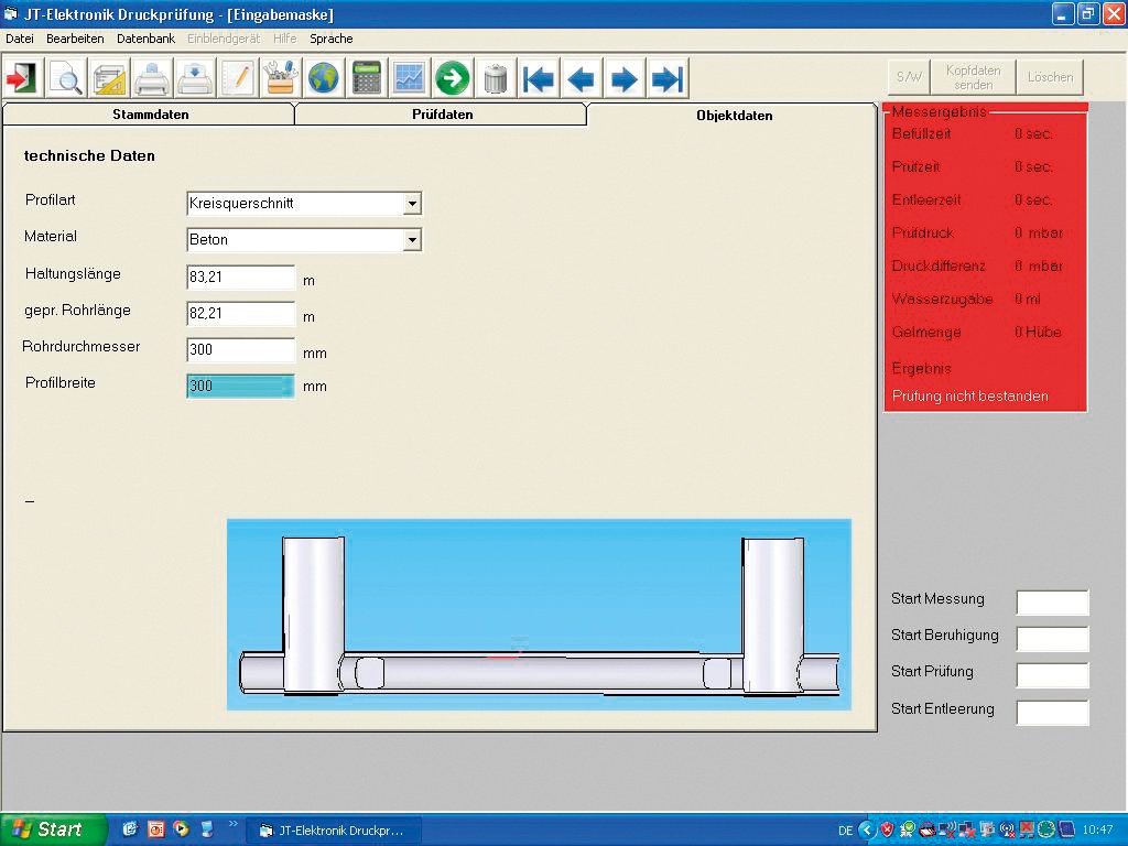 Die Prüftechnik kann optimal ergänzt werden mit der JT-Software für die Dichtheitsprüfung "DMP 2014".